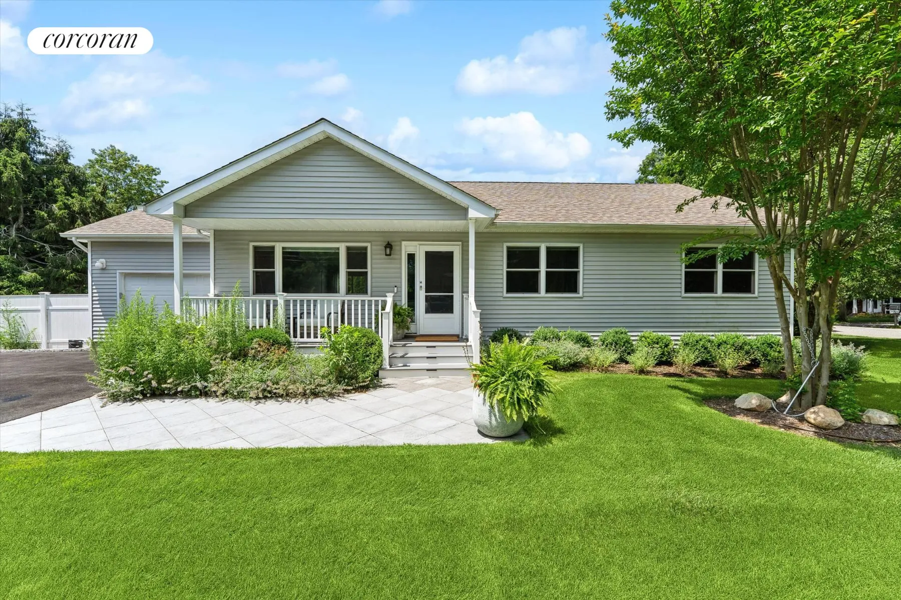Have you ever dreamed of living just 7 minutes from the beach? Now’s your chance. Built in 2016 & ideally situated just 2.5 miles from Ponquogue and Southampton Town beaches, this beautifully maintained, move-in-ready ranch is the perfect Hamptons retreat. Set on a quiet street, the home offers 3 spacious bedrooms and 2 full bathrooms, including a primary suite with dual oversized closets and a private en-suite bath. The open-concept living area is bright and welcoming, with soaring cathedral ceilings and effortless flow from the living room to the dining area and upgraded kitchen. Sliding glass doors open to a newly redesigned backyard, ideal for seamless indoor-outdoor living. The kitchen is equipped with stainless steel appliances, ample cabinetry, and a generous pantry for added storage. A full exterior renovation was completed in fall 2024, transforming the property with a newly paved and masoned driveway, a paver-lined front walkway, and a completely reimagined backyard featuring a new patio, garden wall, and vibrant landscaping with room for a pool. The property was regraded and finished with fresh sod, a state-of-the-art irrigation and drainage system, and drip zones for all plantings. Both front and rear decks were upgraded with low-maintenance Trex decking, and the entire outdoor space is enhanced by professional landscape lighting for added ambiance and curb appeal. Additional features include a one-car garage and a full unfinished basement with high ceilings offering endless potential. This home is move-in ready and offers the perfect blend of comfort, style, and location-whether you’re seeking a year-round residence or a seasonal escape.
