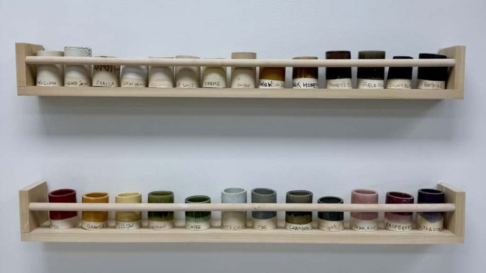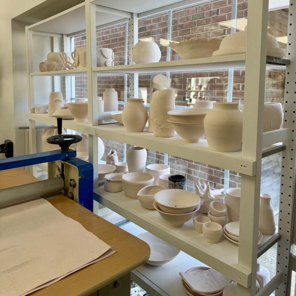 Shelves at Mudita Ceramics School of the Hamptons. Photo courtesy of Eve Behar