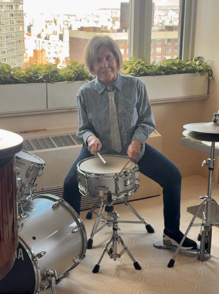 Kane joined in the fun herself, sitting in on the snare drum with Stritch—sticks and brushes included (who knew?!).