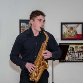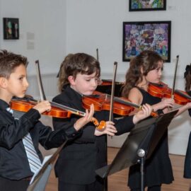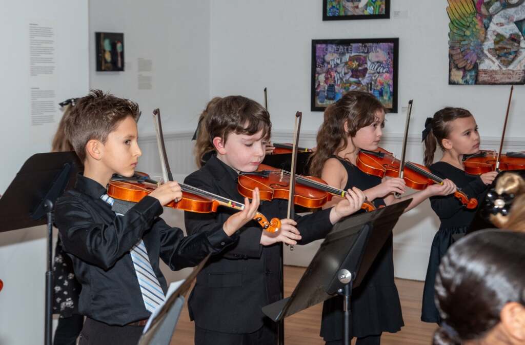 Student musicians provided live music throughout the event, including a flute ensemble, a string ensemble and a jazz group. During the reception, artist Deborah Acquino hosted a Family Open Studio Valentine Workshop where guests created handmade valentines.