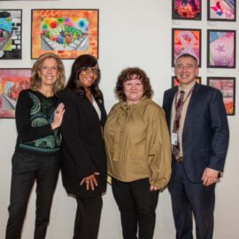 Simone Levinson, Dr. Fatima Morrell, Christina Strassfield, Dr. Brian Zahn. SAC ‘First Light: Celebrating Student Artists of Southampton’ opening reception, Feb. 11, 2026. Photo by Lisa Tamburini