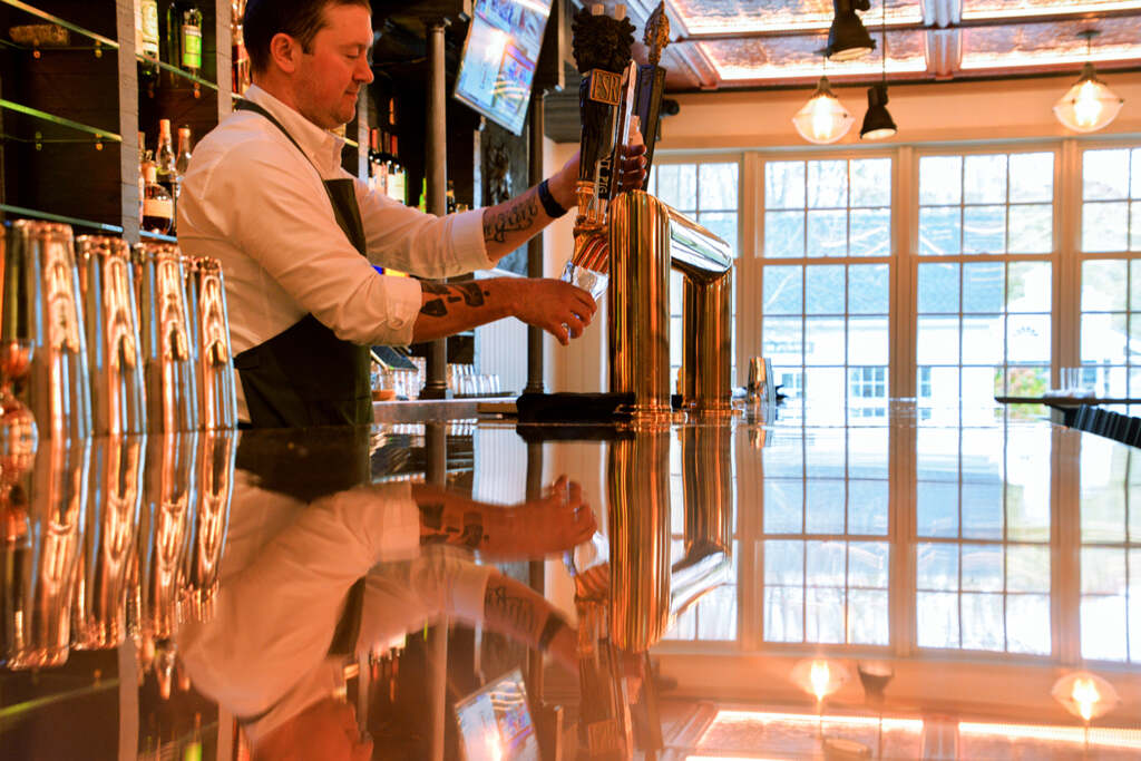 On a winter night in Amagansett, the light from Rowdy Hall feels homey, like a porch light for the whole area. Inside, you’ll see familiar faces: regulars sharing fries, someone enjoying French onion soup, or a couple celebrating something special. For 30 years, Rowdy Hall has been that kind of place—part English pub, part French bistro, and a bit like your own living room.