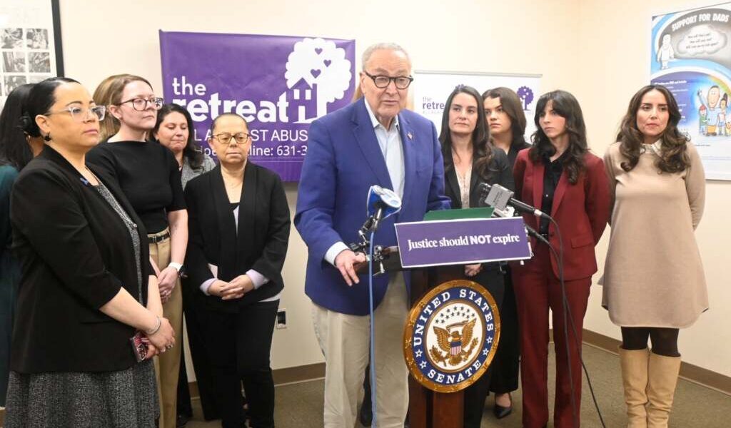 Standing inside The Retreat, a Suffolk County–based nonprofit serving survivors of domestic violence, sexual assault and human trafficking, U.S. Sen. Chuck Schumer called for the passage of “Virginia’s Law,” federal legislation aimed at expanding legal options for survivors of sexual abuse and trafficking.