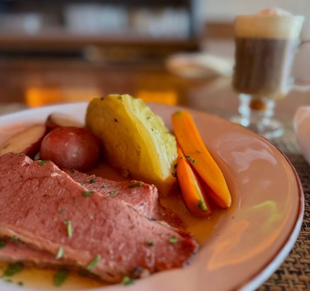 A lively pub setting for classic Irish comfort fare including corned beef and cabbage, shepherd’s pie and bangers and mash.